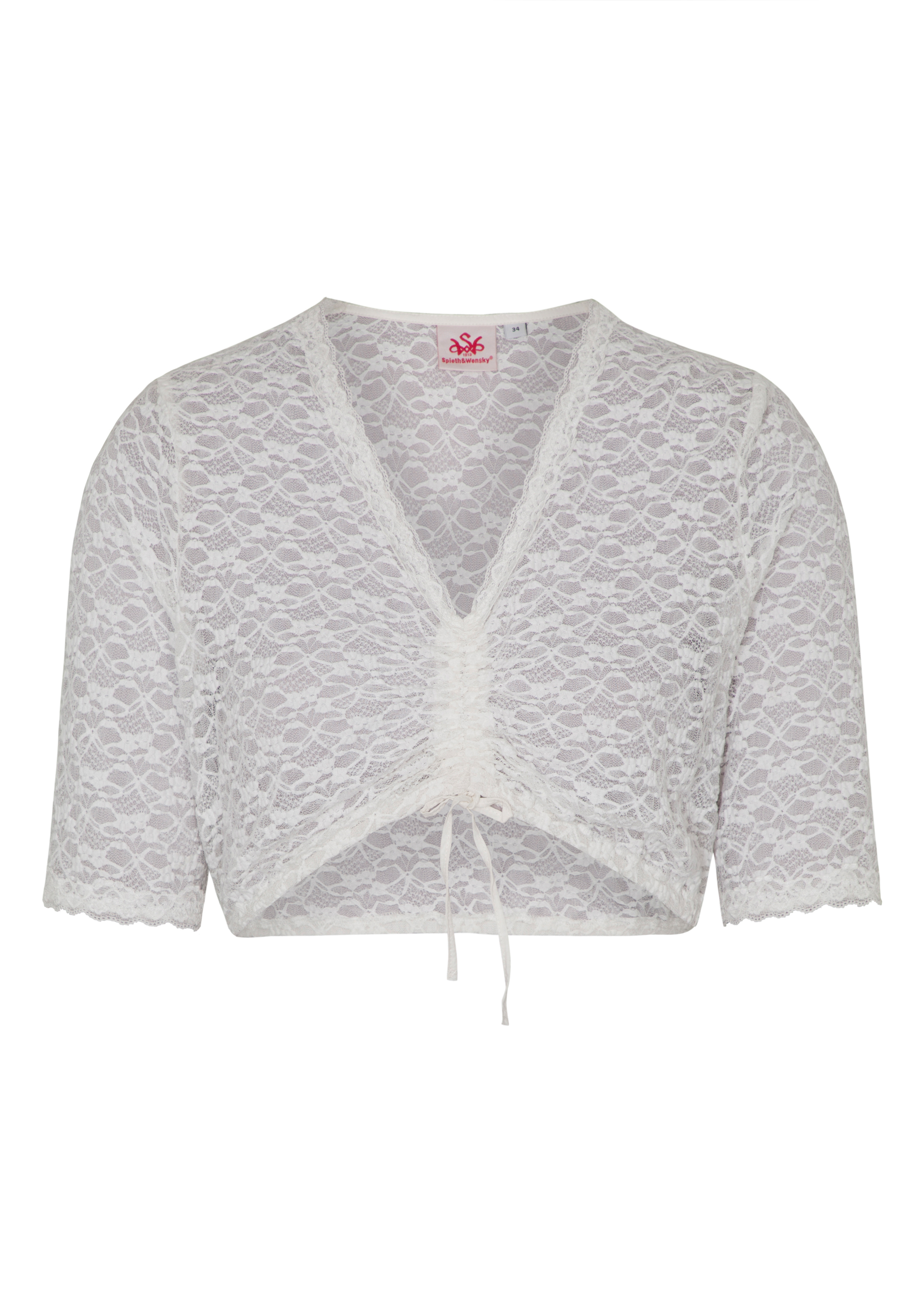 Die Dirndlbluse ‚Flash’ von Spieth & Wensky besticht vor allem durch ihre Allover-Spitzen sowie dem femininen V-Ausschnitt. Die Bluse ist durch den Tunnelzug und dem elastischen Saum, trotz ihres kurzen Schnitts sehr bequem. Ein schickes Bindeband sorgt für den Schnürverschluss sowie für ein weiteren optischen Akzent dieser eleganten Dirndlbluse.