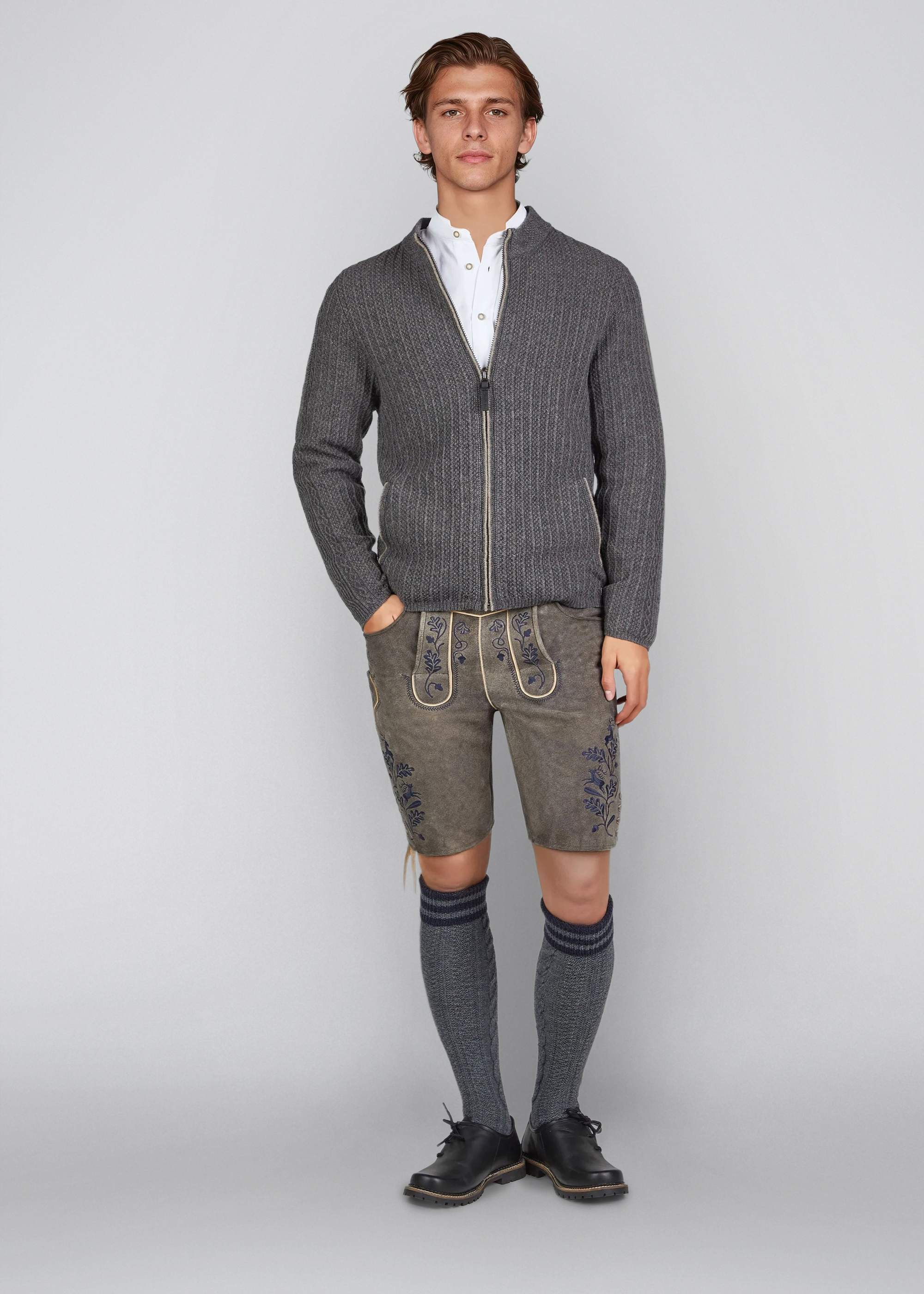 Hagen-Strickjacke – klassisch und vielseitig Die Hagen-Strickjacke für Herren überzeugt durch ihr feines Zopfmuster und einen praktischen Stehkragen. Der Reißverschluss sorgt für unkompliziertes An- und Ausziehen, während die Länge von 66 cm für eine ideale Passform sorgt. Dank hochwertiger Wollmischung bietet die Strickjacke Komfort, Wärme und Strapazierfähigkeit. Vielseitig kombinierbar zu Trachtenhemden, Lederhosen oder Freizeit-Outfits, ist die Hagen-Strickjacke ein klassisches Must-have für Herren.