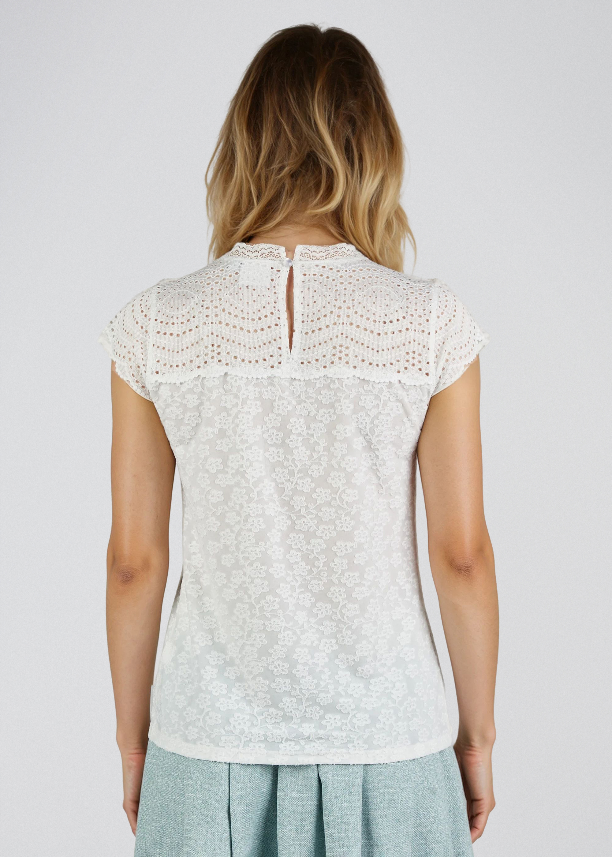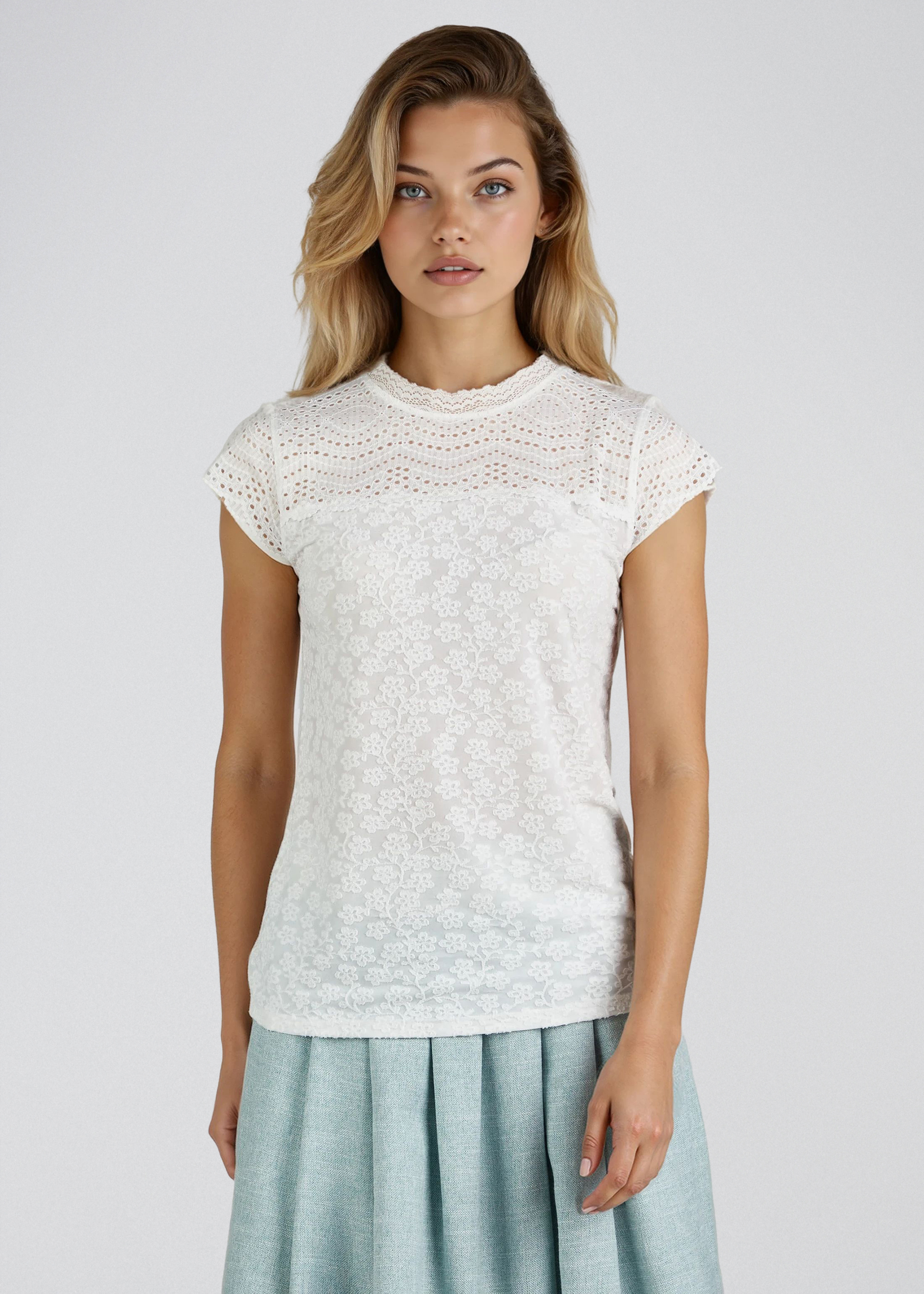 Helena-Bluse – elegant in Offweiß Die Helena-Trachtenbluse für Damen besticht durch abgeteilte Verzierungen im Stoff und einen klassischen Rundhals-Ausschnitt, die der Bluse eine feine Note verleihen. Ein spitzenförmiger Wellensaum und die fein gestrickte Struktur sorgen für stilvolles Design und angenehmen Tragekomfort. Dank ihres elastischen Materials passt sich die Bluse dem Körper an und lässt sich vielseitig zu Lederhosen, Trachtenröcken oder festlichen Outfits kombinieren – ideal für Feste, Trachten-Events oder besondere Anlässe.